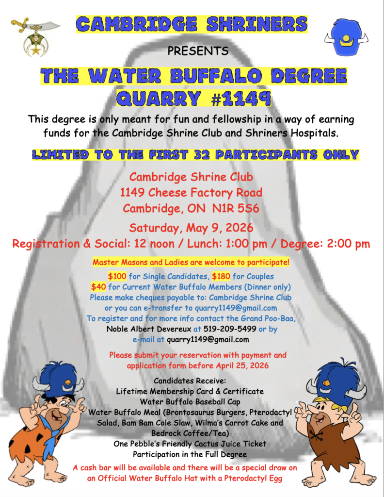 The Stone Crushers of Quarry Lodge are hard at work in preparation of the next group of Water Buffalo initiations set for May 9, 2026. Watch here for more details or email quarry1149@gmail.com and get yourself on the list to become a candidate for initiation to Quarry Lodge #1149.